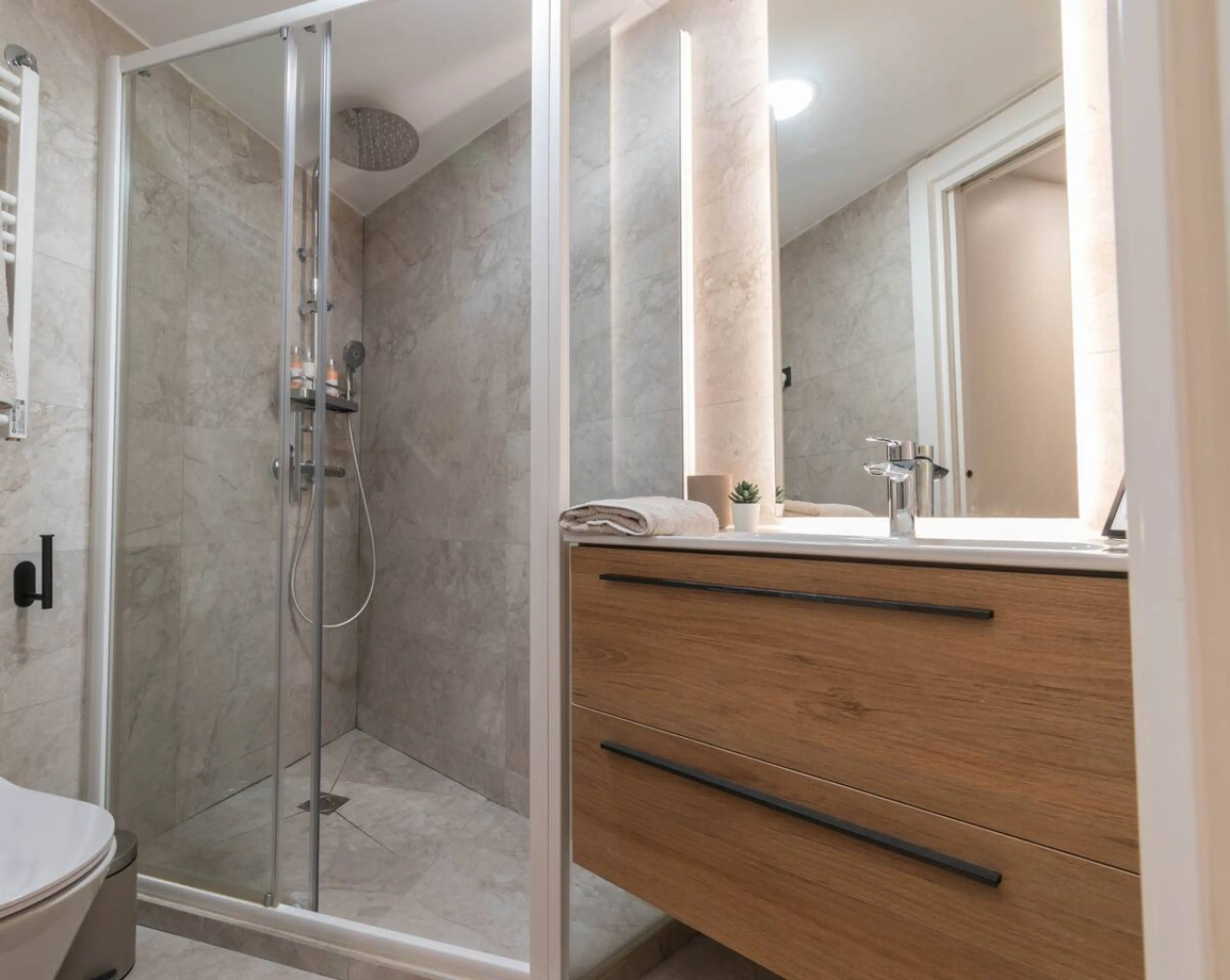 Positive: Extremely well equipped apartment with anything you can image from brand new toaster to scale for your bags. The shower was amazing also ! The apartment was very comfortable. We had to book it last minute, late at night, and we found the owner almost immediately and he saved us by letting us check in within a few minutes! Finally, the location is very good, near the center and metro station.